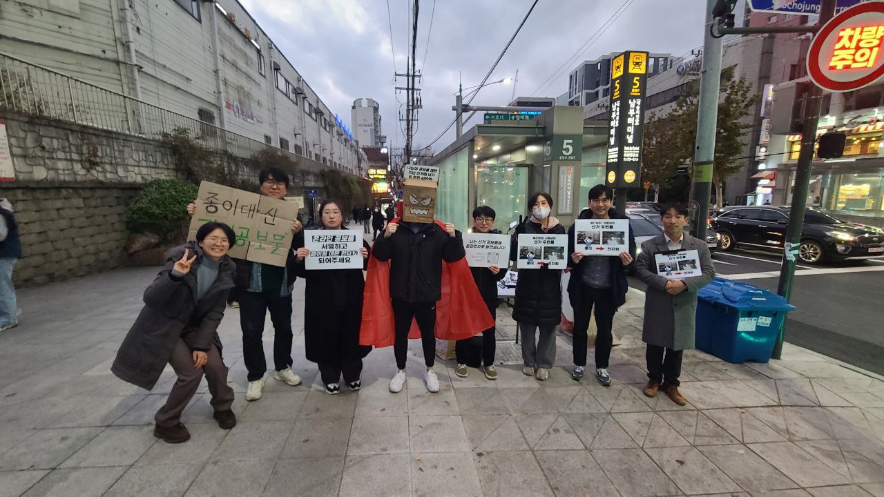 11/29 온라인 공보물 전환 서명운동 남부터미널에서 잘 마쳤습니다.