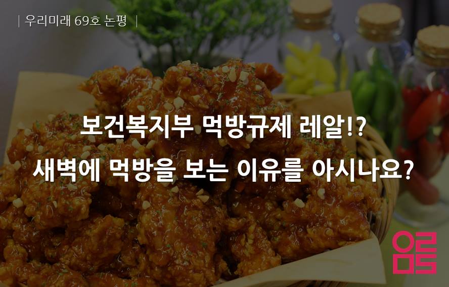 모두가 저녁에 충분한 휴식할 권리를 가지고 사랑하는 사람과 눈 마주치며 품위 있게 식사하는 권리를 가질 때 먹방의 인기는 자연적으로 사그라질 것이다. 아이러니하게도 이는 보건복지부의 ‘국가 비만 종합대책’에 근거한 ‘먹방규제 가이드라인’이 아니라 국가의 재정확대에 근거한 적극적 복지 정책을 통해 시민 누구에게나 교육, 의료, 주택 등 다양한 권리가 주어질 때 가능하다. 보건복지부는 ‘먹방’의 단면이 아니라 ‘먹방’의 허기진 이면을 부디 잘 살피기를 당부해 본다.
